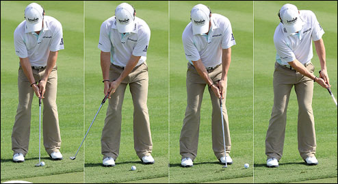 Tôi khuyên bạn nên chuẩn bị ít nhất 5 quả bóng cho khu vực luyện tập green và hãy đánh chúng bằng tay phải.Tác dụng của việc này là tạo cho bạn một cảm giác tự nhiên và khỏe mạnh hơn. Khi tập luyện bạn chỉ cần gạt nhẹ một cái rất từ từ là bóng cũng đi khá mạnh việc gạt nhẹ phải thực hiện bằng cổ tay để luyện cho cổ tay dẻo dai.
